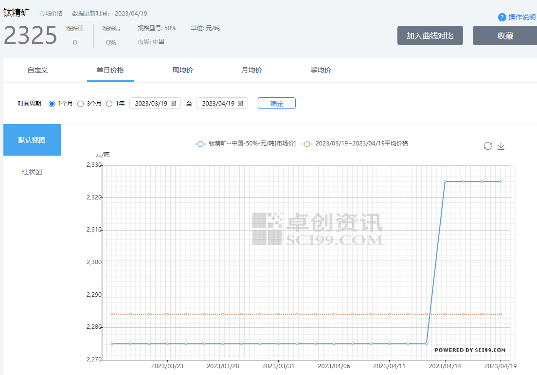 四、鈦精礦、海綿鈦和鈦板近一月價格變化